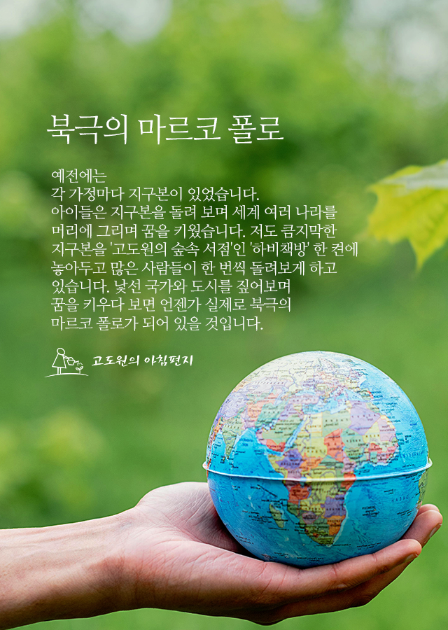 지구본을 '고도원의 숲속 서점'인 '하비책방' 한 켠에