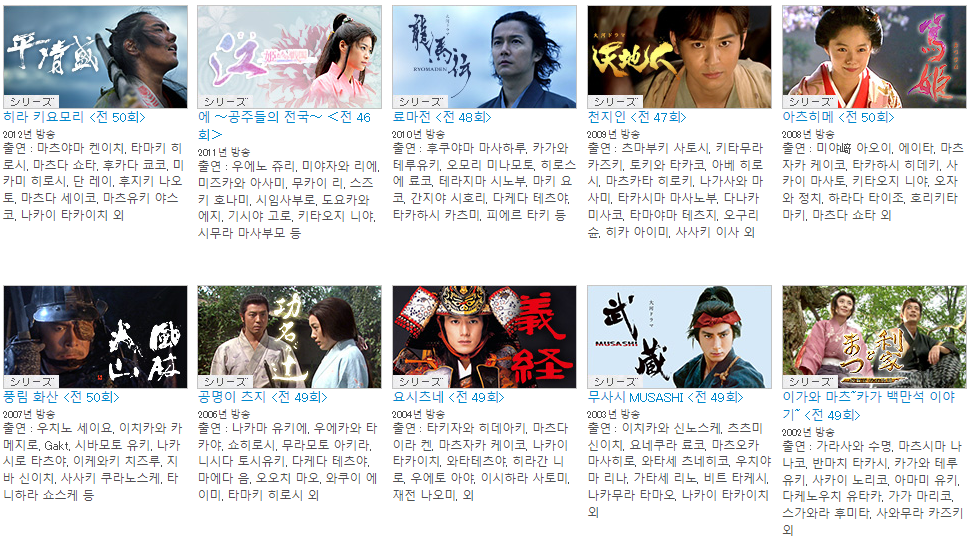 공식 홈 : https://www.nhk.or.jp/archives/bangumi/special/taiga/