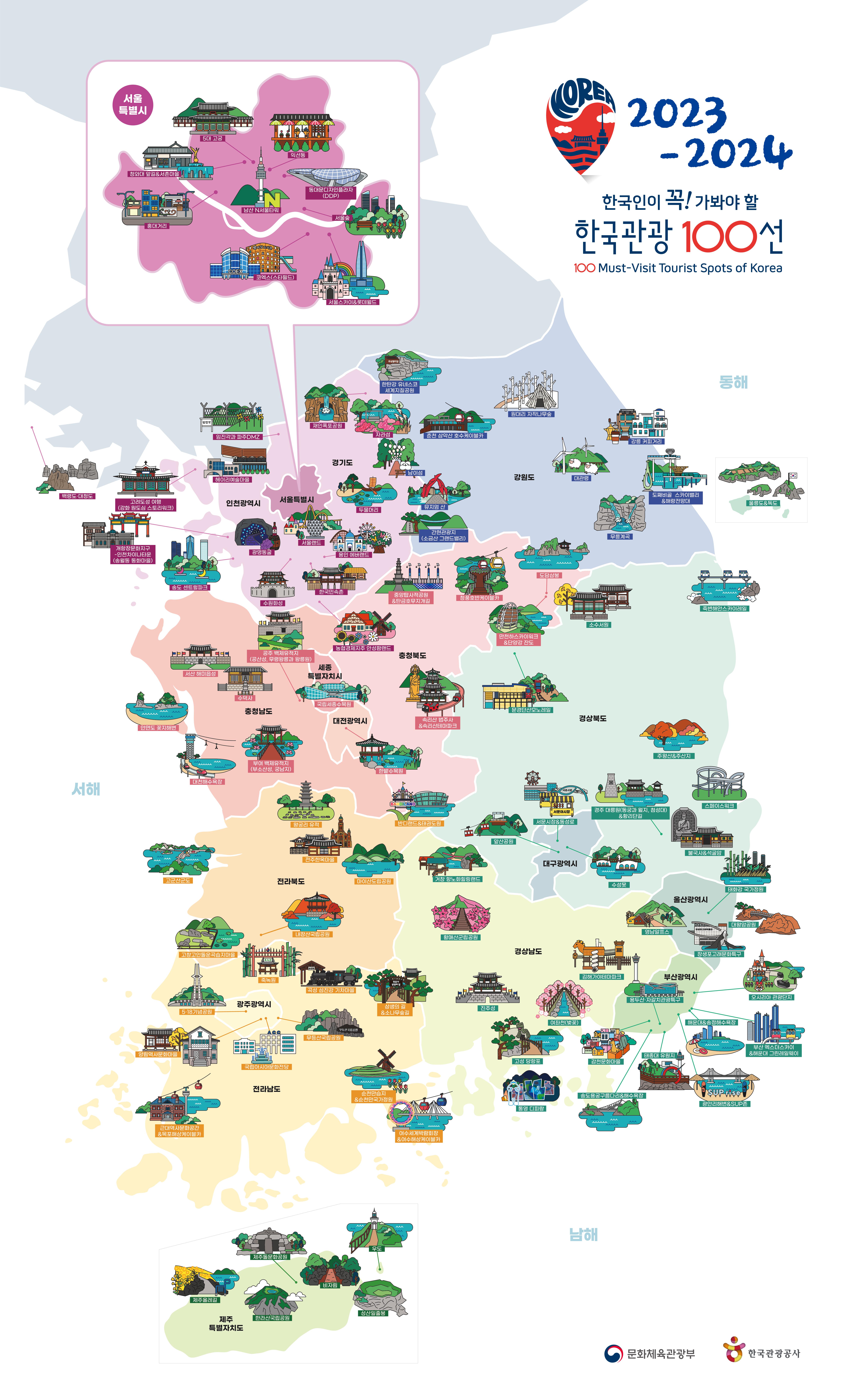 문화체육관광부와 한국관광공사가 선정하는 국내 대표 관광지 100곳, 한국인이 꼭 가봐야 할 한국 관광 100선을 소개합니다! 우리나라 금수강산부터 역사와 문화의 숨결을 느낄 수 있는 곳까지
