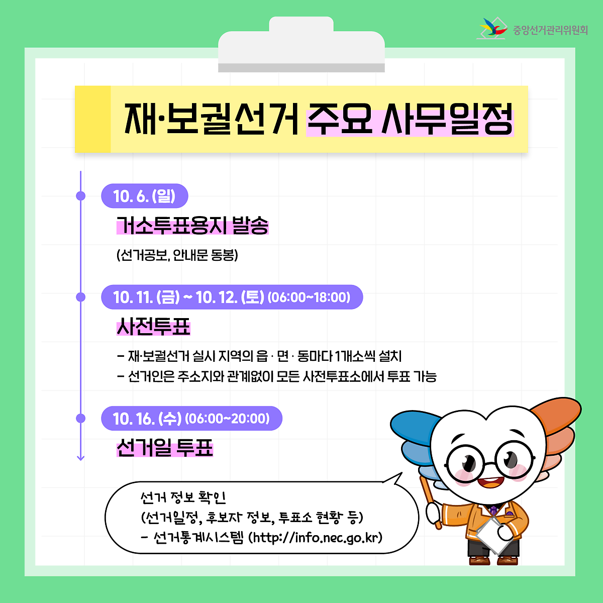 ※ 선거 정보 확인(선거일정, 후보자 정보, 투표소 현황 등)은 선거통계시스템(http://info.nec.go.kr)에서 가능합니다.