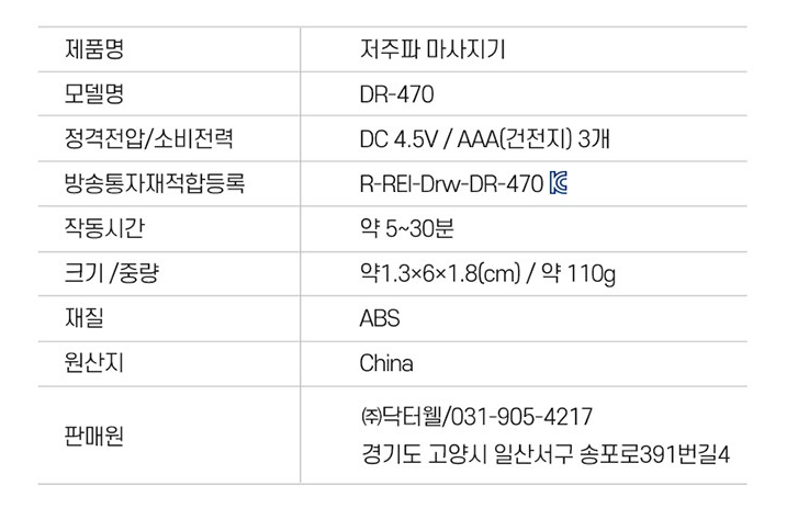 닥터웰 듀얼 저주파 마사지기 본체 전용패드4P 전용패드홀더1P AAA건전지 3개 1세트