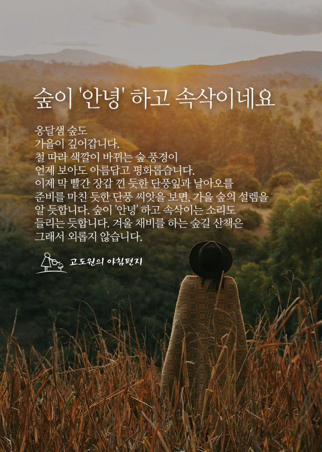 알 듯합니다. 숲이 '안녕' 하고 속삭이는 소리도