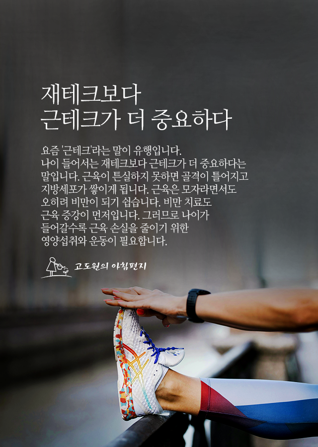 - 이상모의 《평생 걷고 뛰고 싶다면 생존근육 3가지만 키워라》 중에서 -