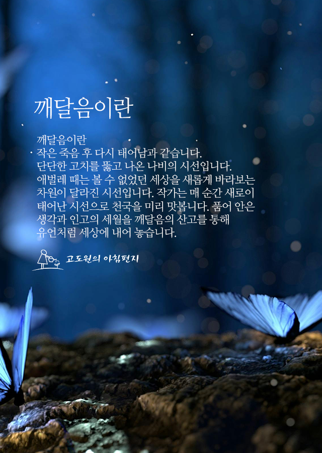 단단한 고치를 뚫고 나온 나비의 시선입니다.
