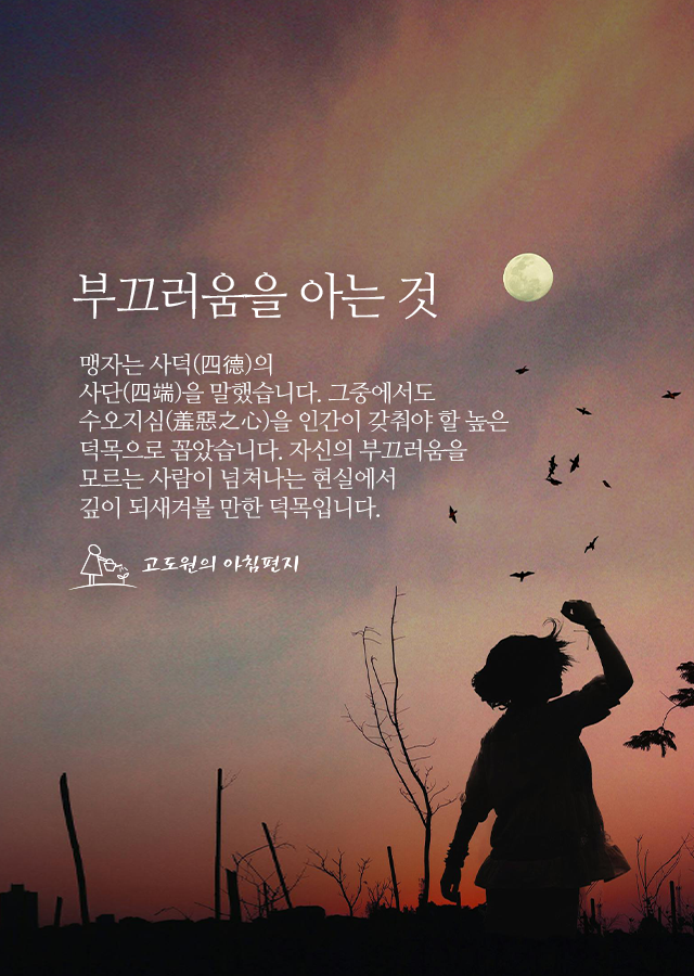 옳지 못함을 부끄럽게 여겨야 사람다운 삶을