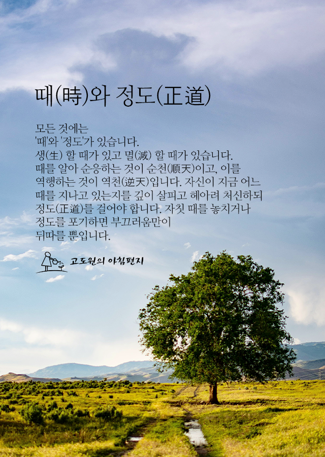 정도(正道)를 걸어야 합니다. 자칫 때를 놓치거나