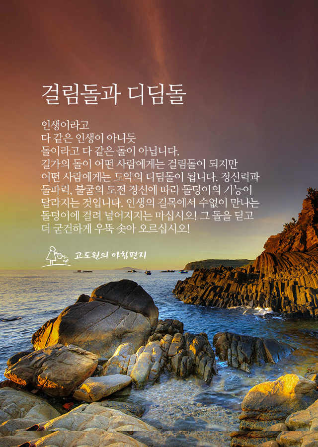 돌덩이에 걸려 넘어지지는 마십시오! 그 돌을 딛고