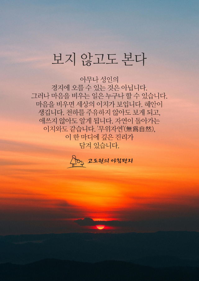 마음을 비우면 세상의 이치가 보입니다. 혜안이
